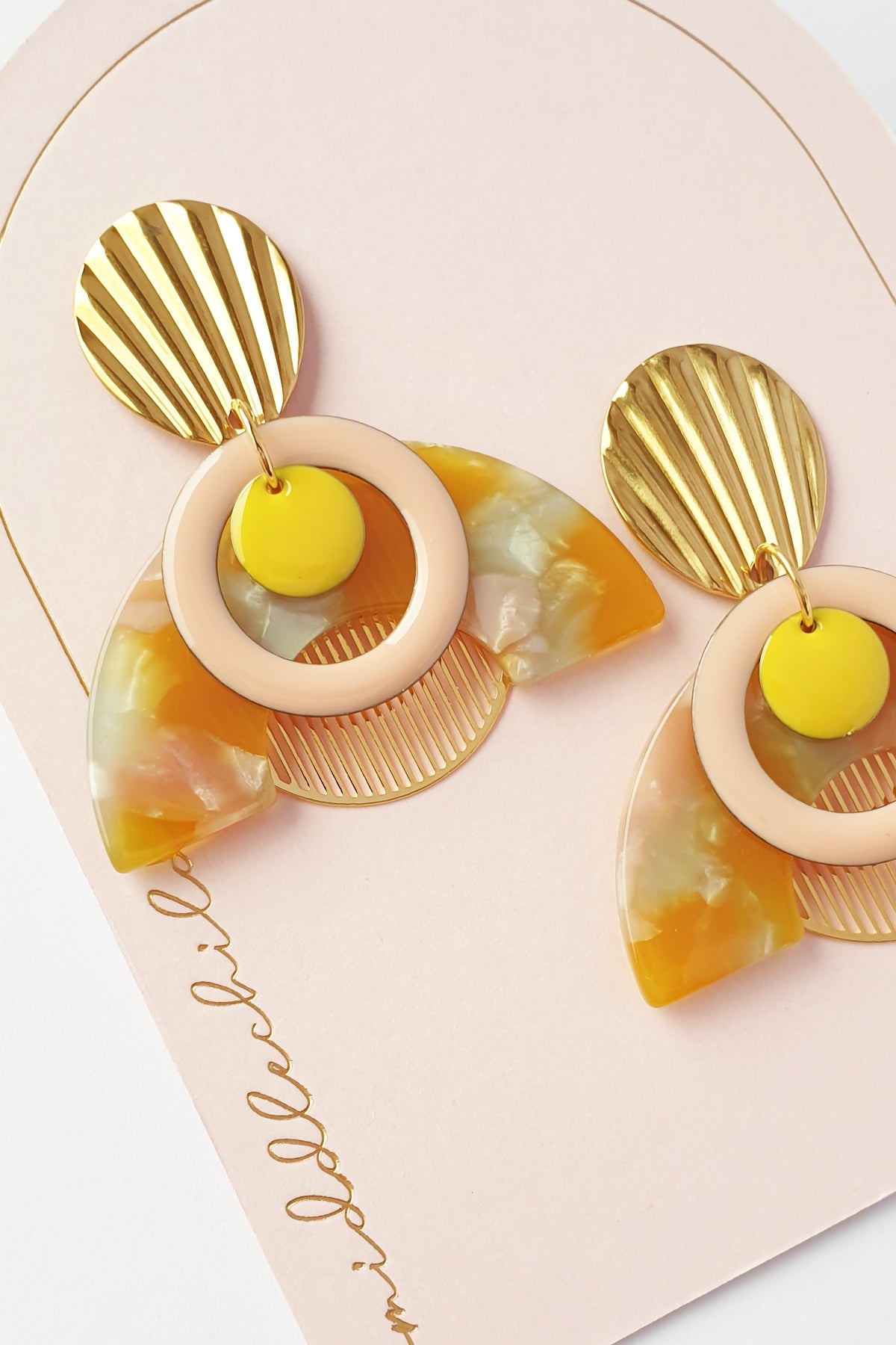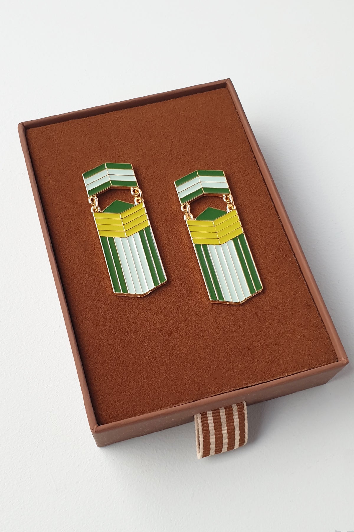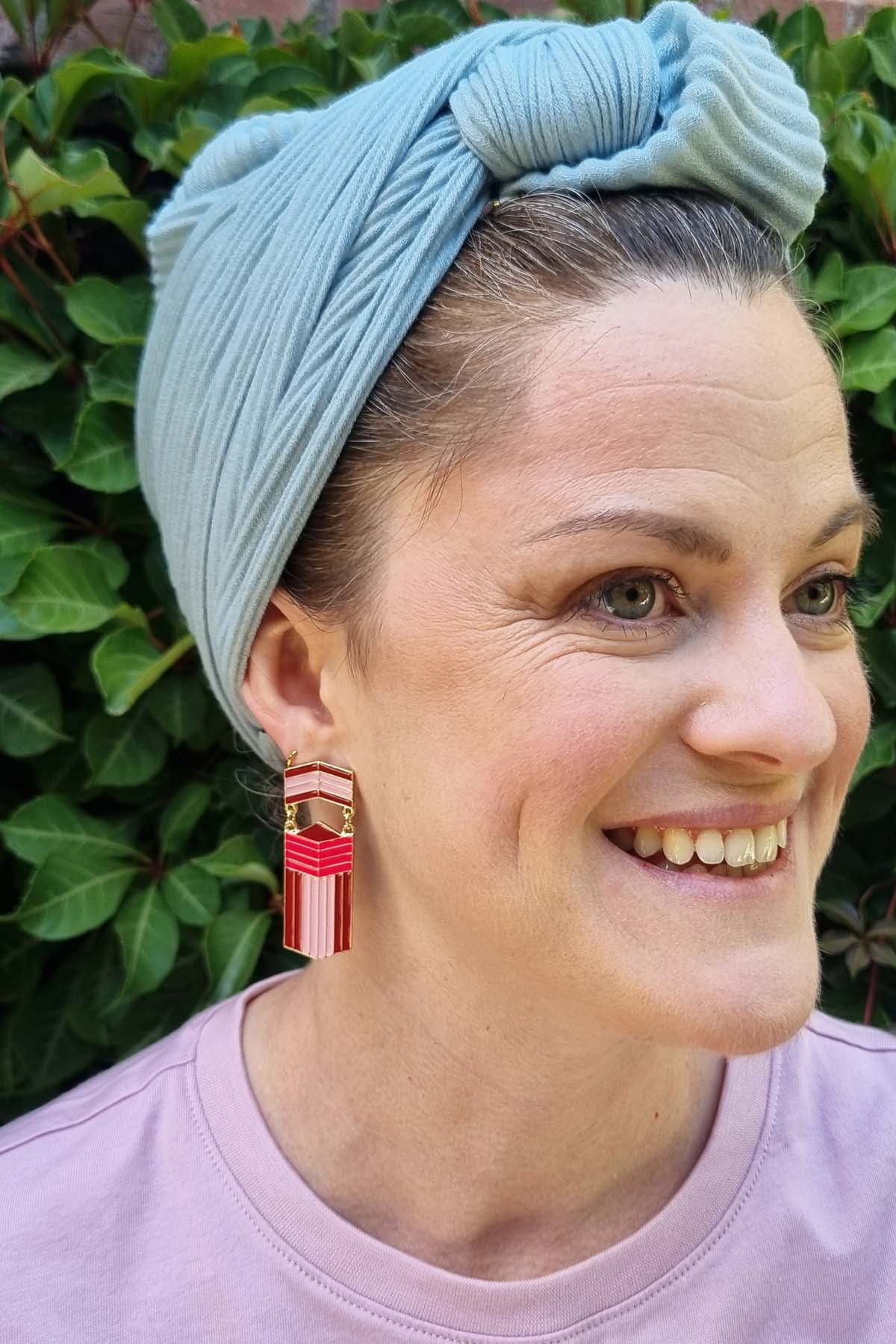 I started creating earrings while studying Industrial Design at RMIT, way back in 2001. I love designing jewellery as it bridges product and fashion design and enables me to playfully express my passion for colour and bygone eras.