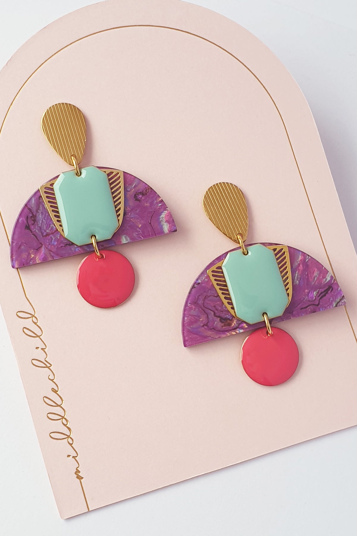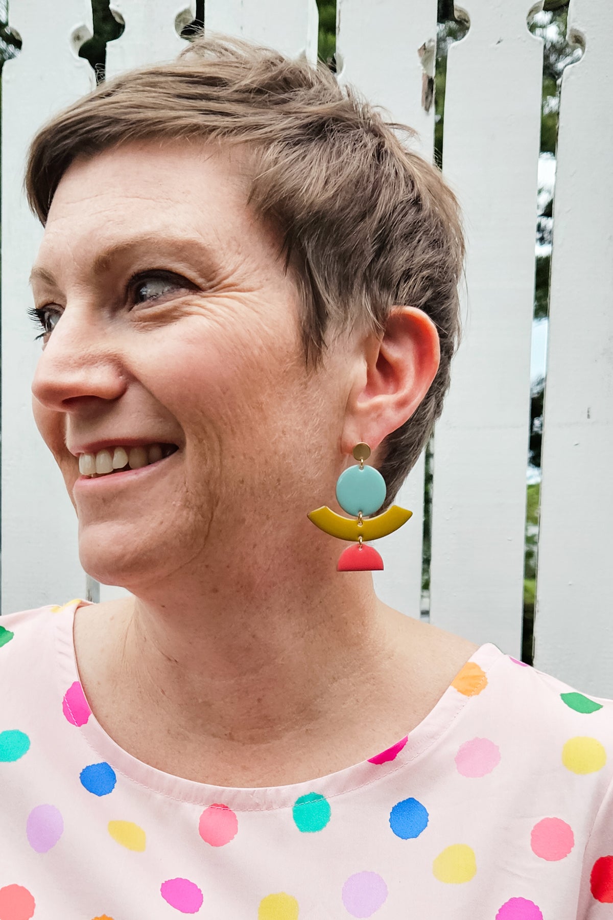 I started creating earrings while studying Industrial Design at RMIT, way back in 2001. I love designing jewellery as it bridges product and fashion design and enables me to playfully express my passion for colour and bygone eras.