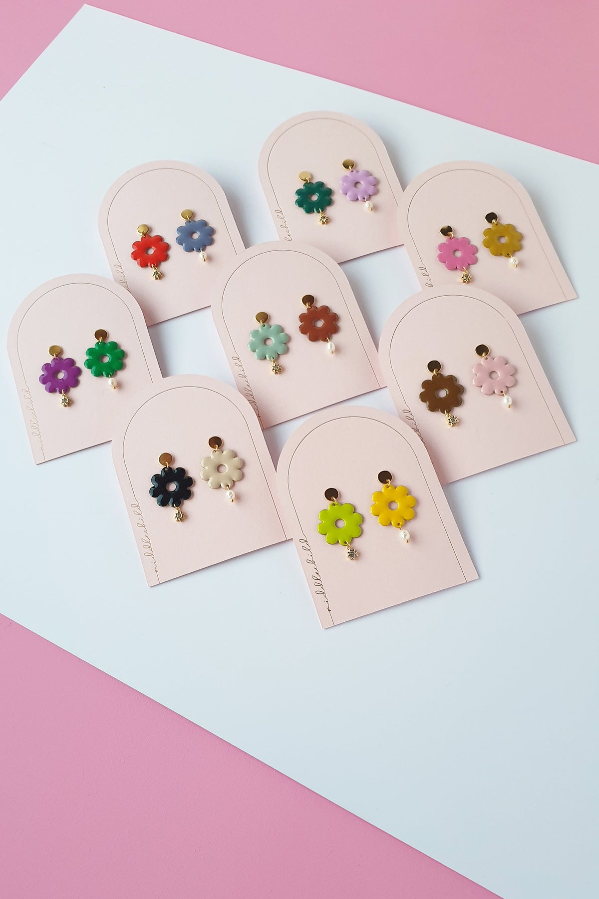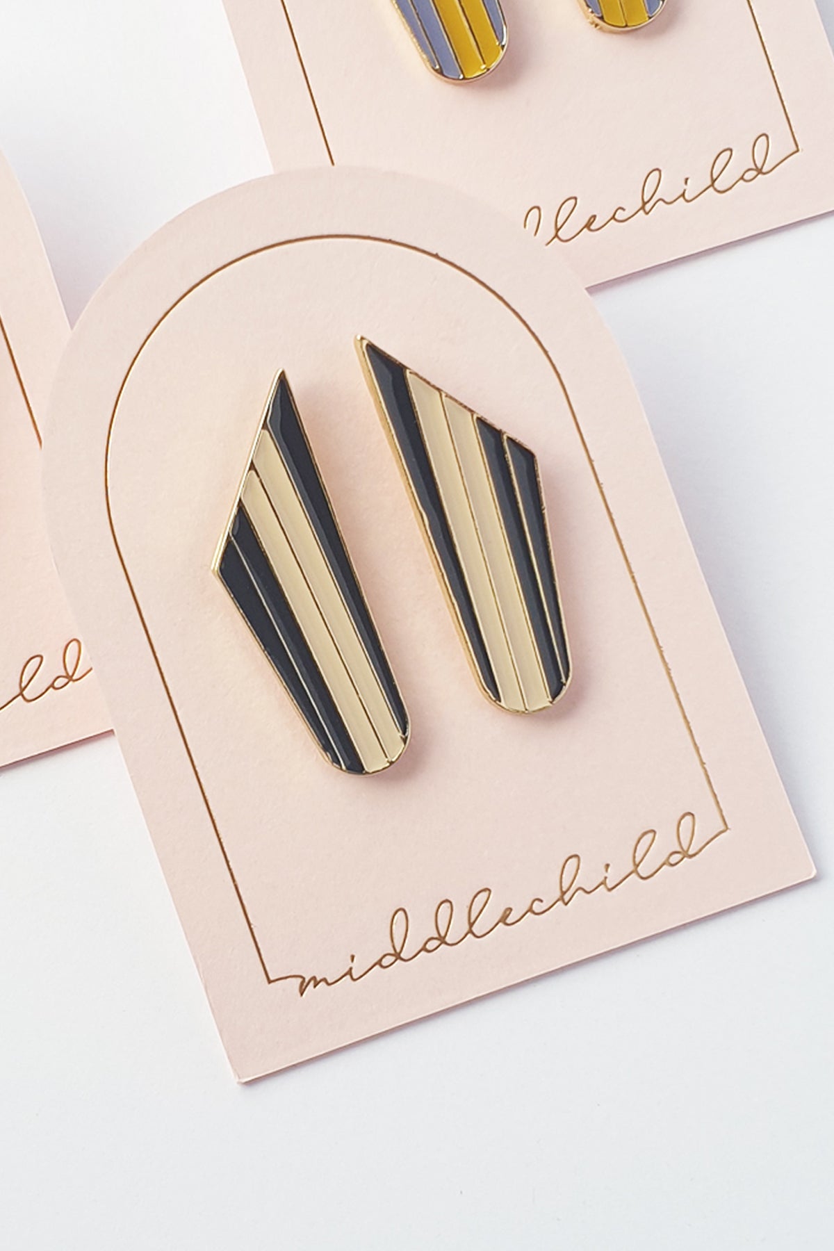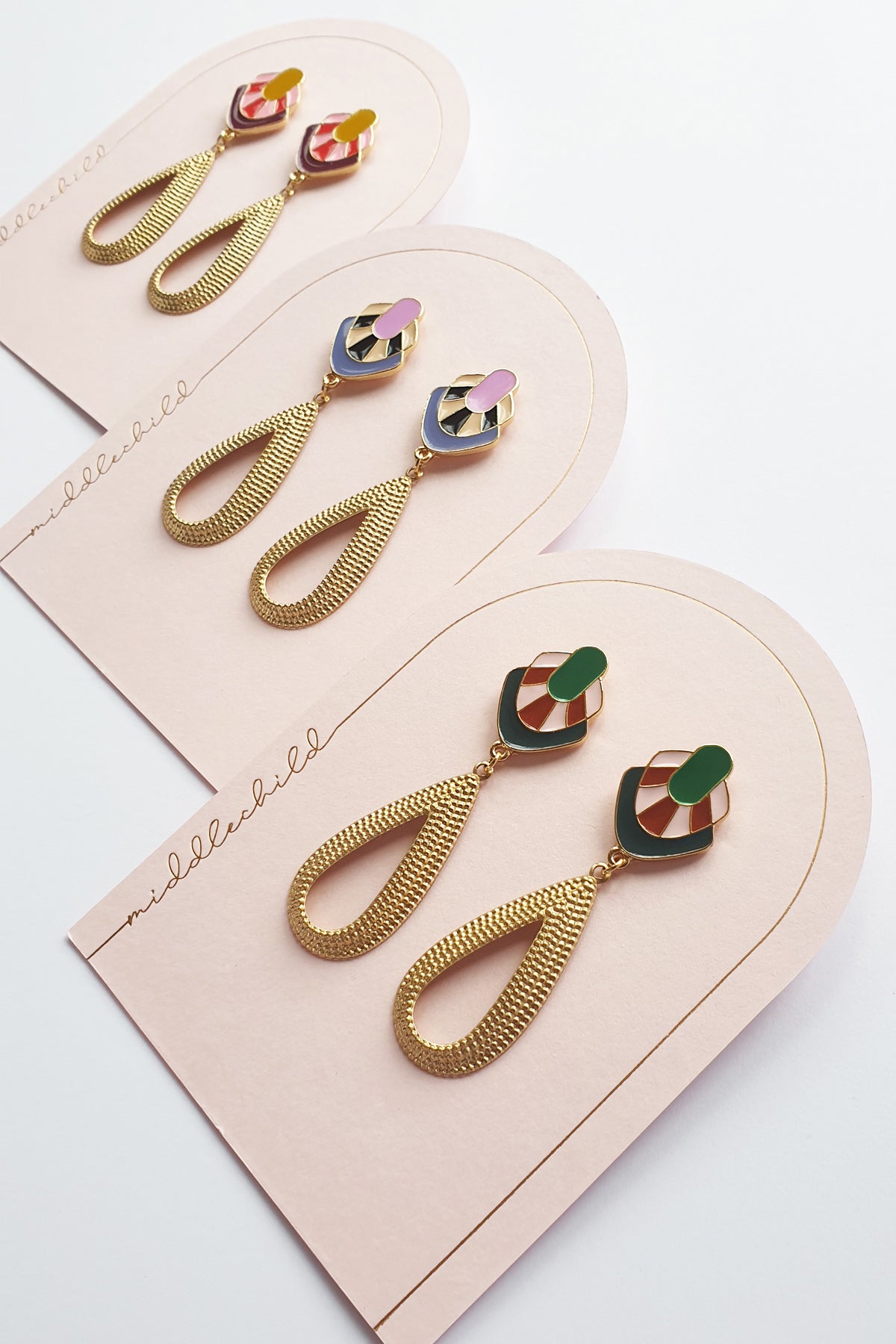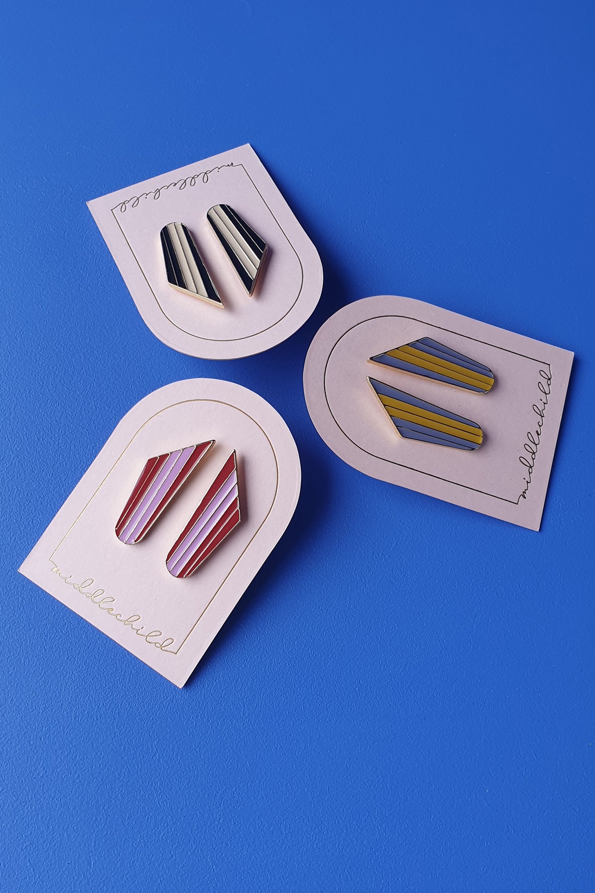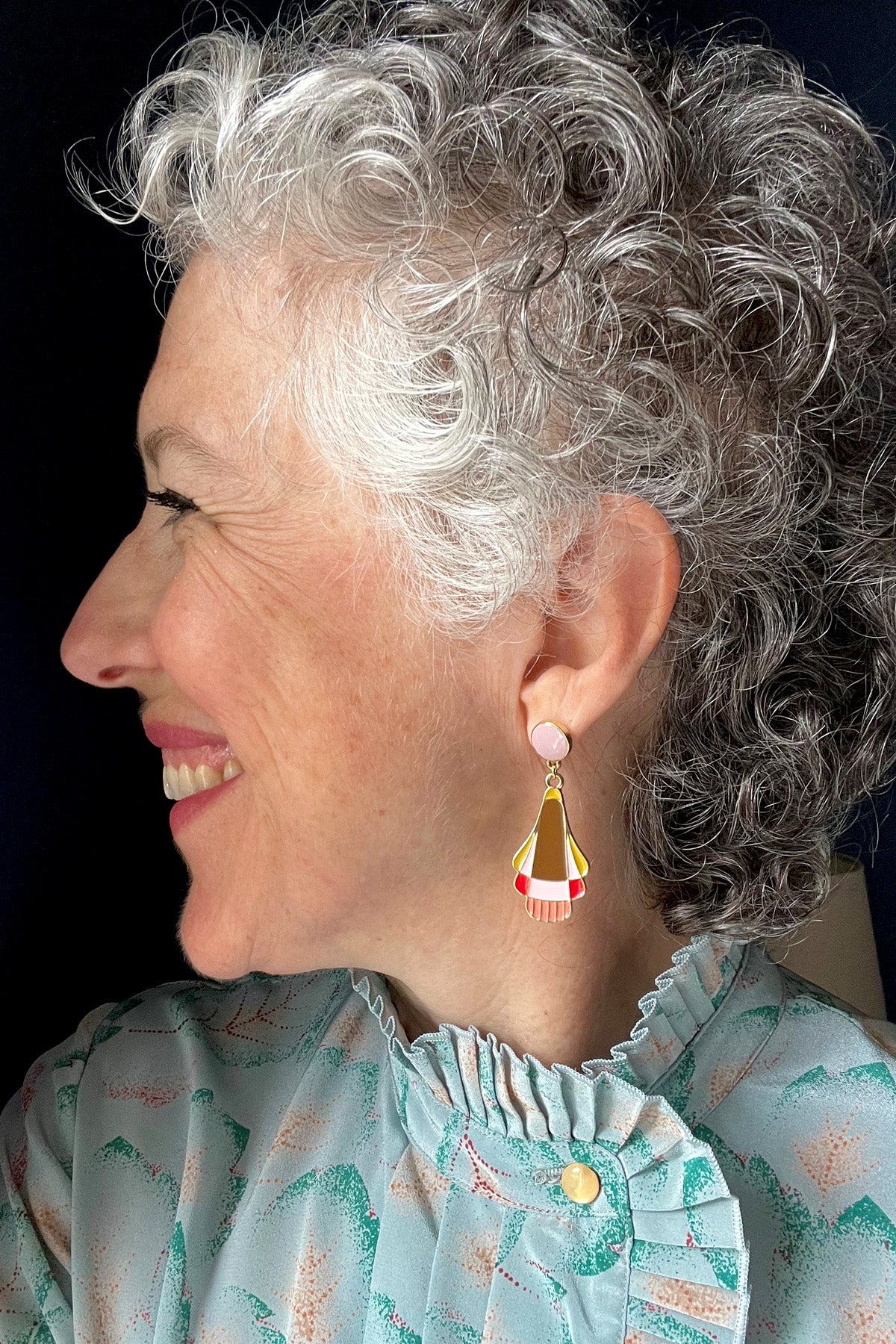 I started creating earrings while studying Industrial Design at RMIT, way back in 2001. I love designing jewellery as it bridges product and fashion design and enables me to playfully express my passion for colour and bygone eras.