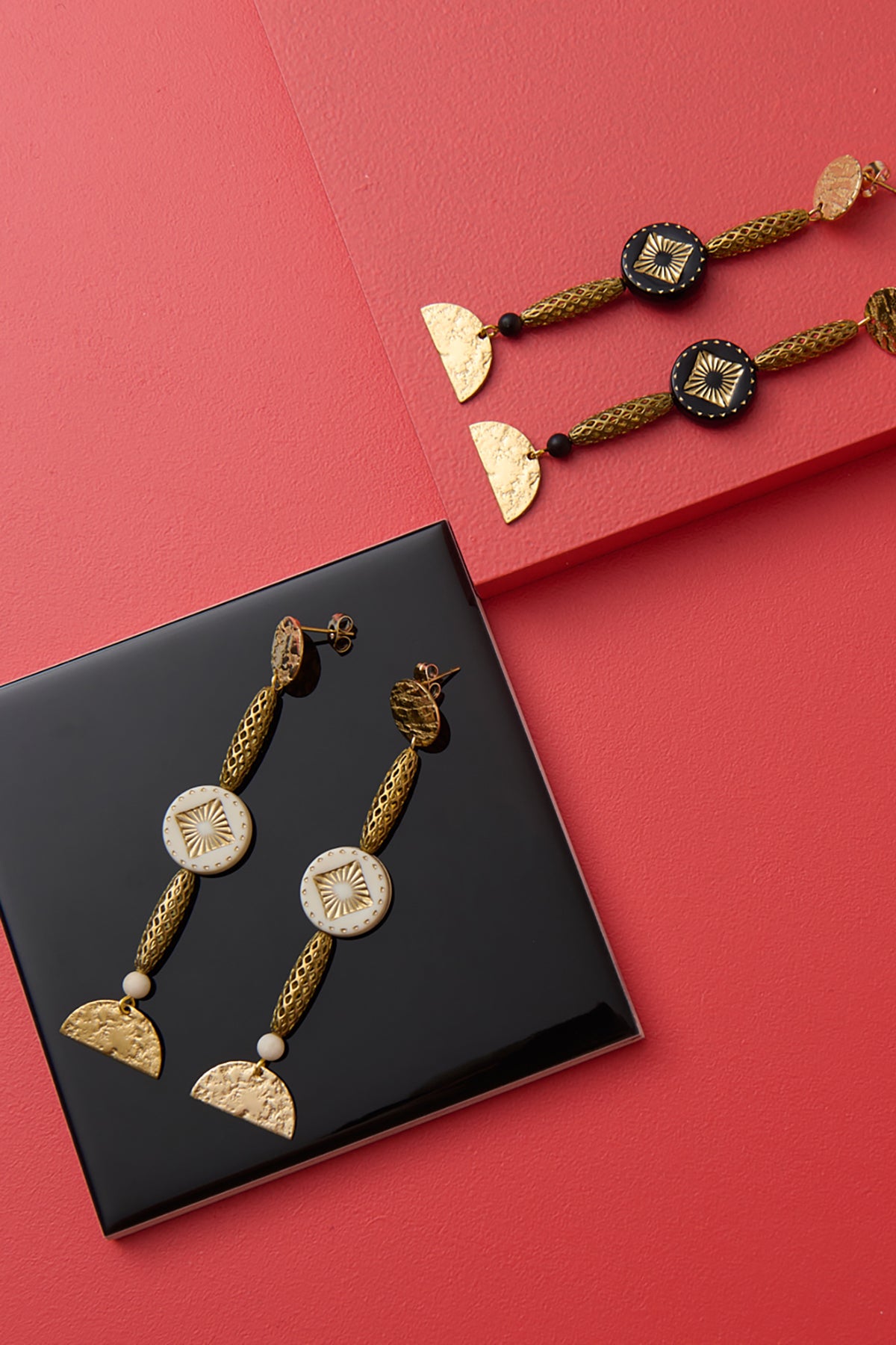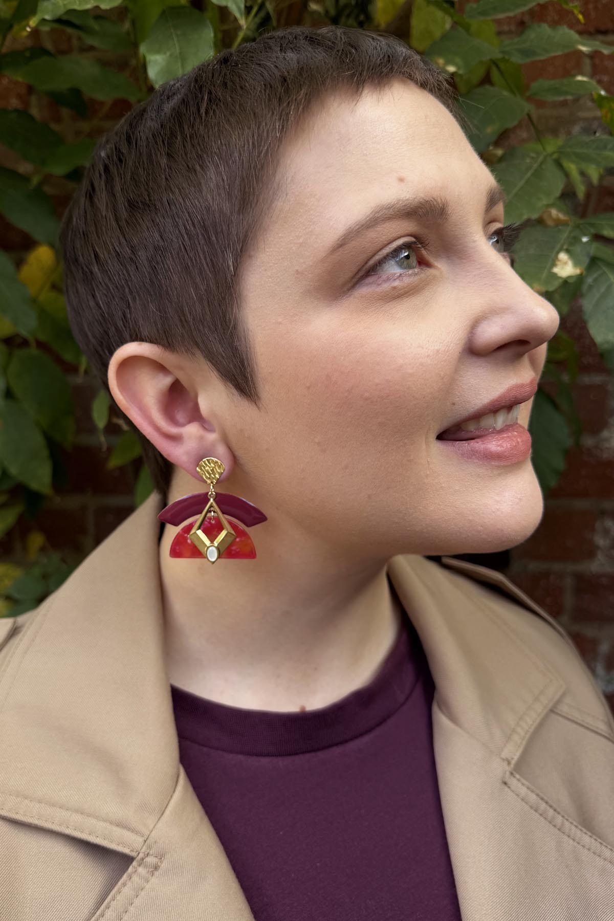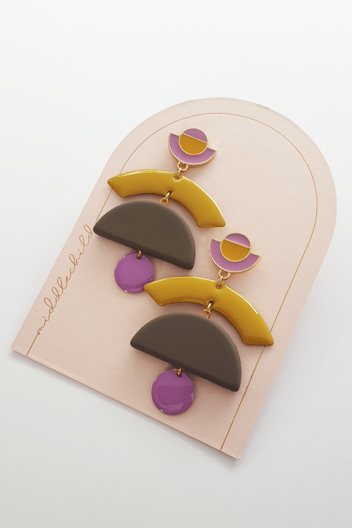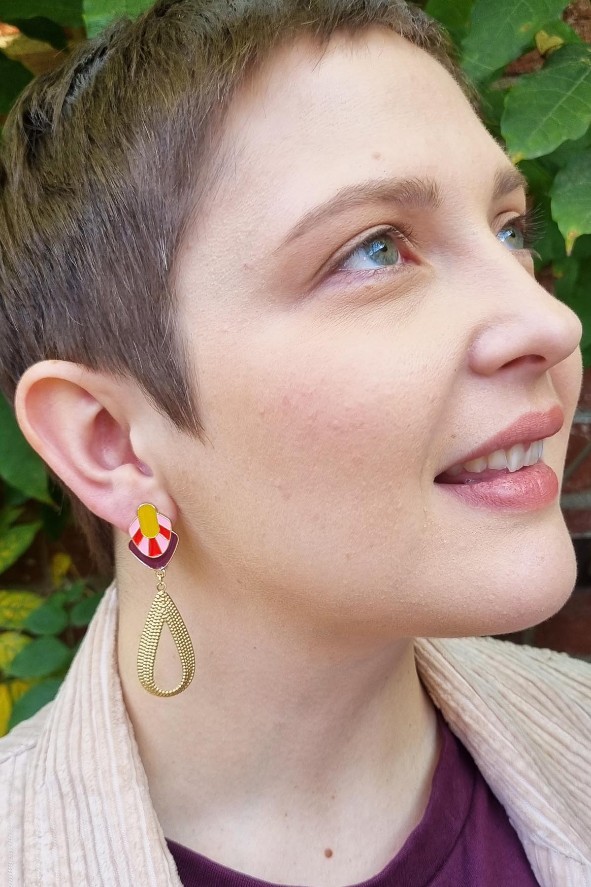 I started creating earrings while studying Industrial Design at RMIT, way back in 2001. I love designing jewellery as it bridges product and fashion design and enables me to playfully express my passion for colour and bygone eras.