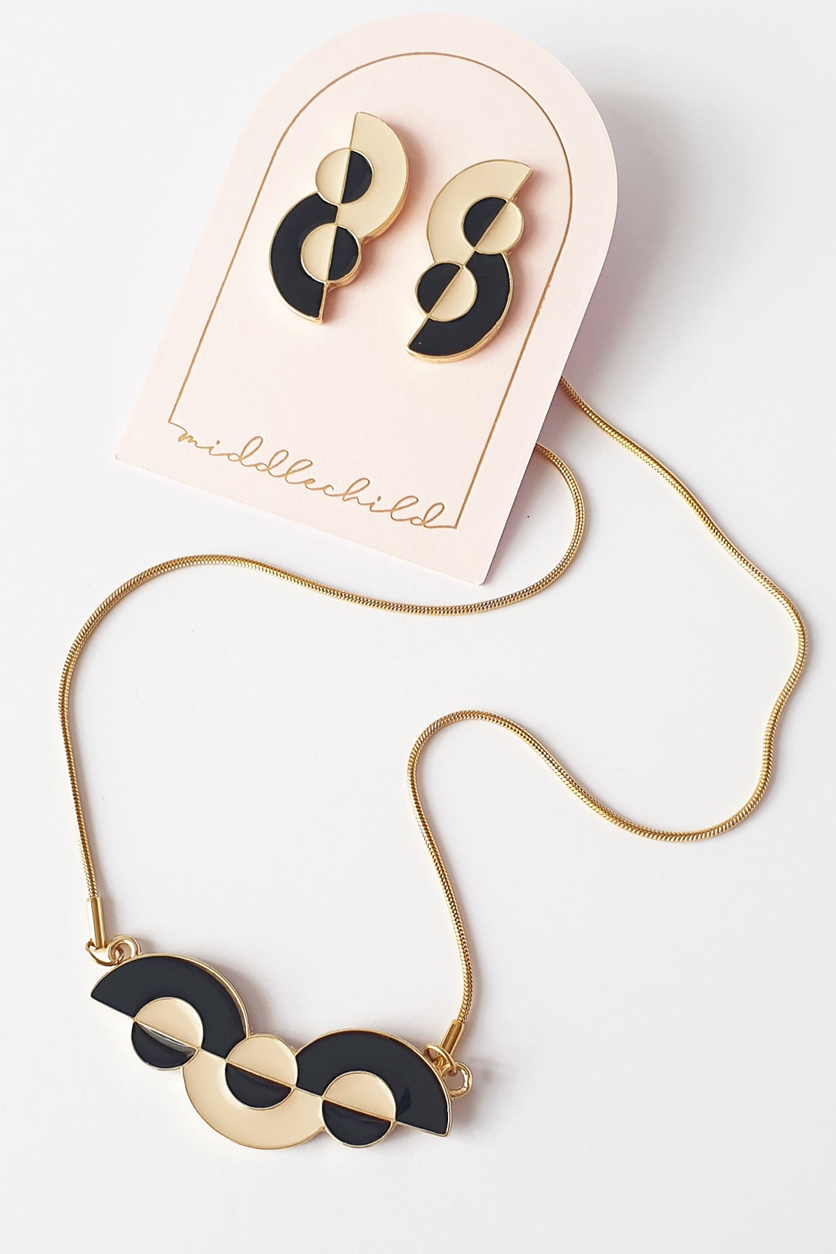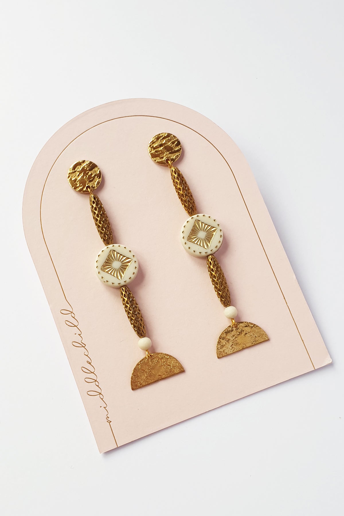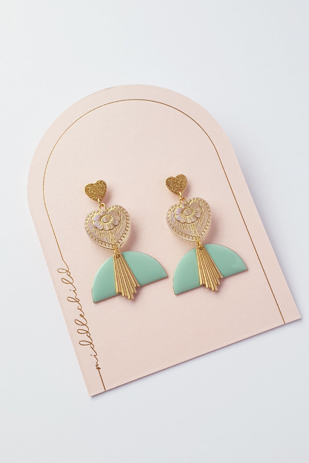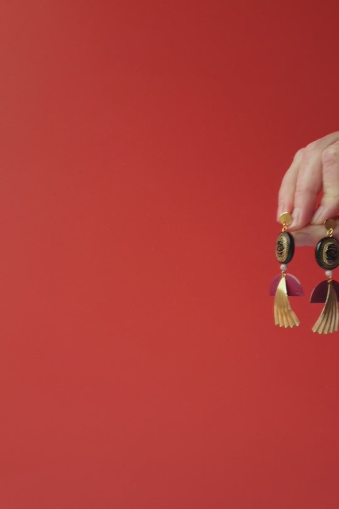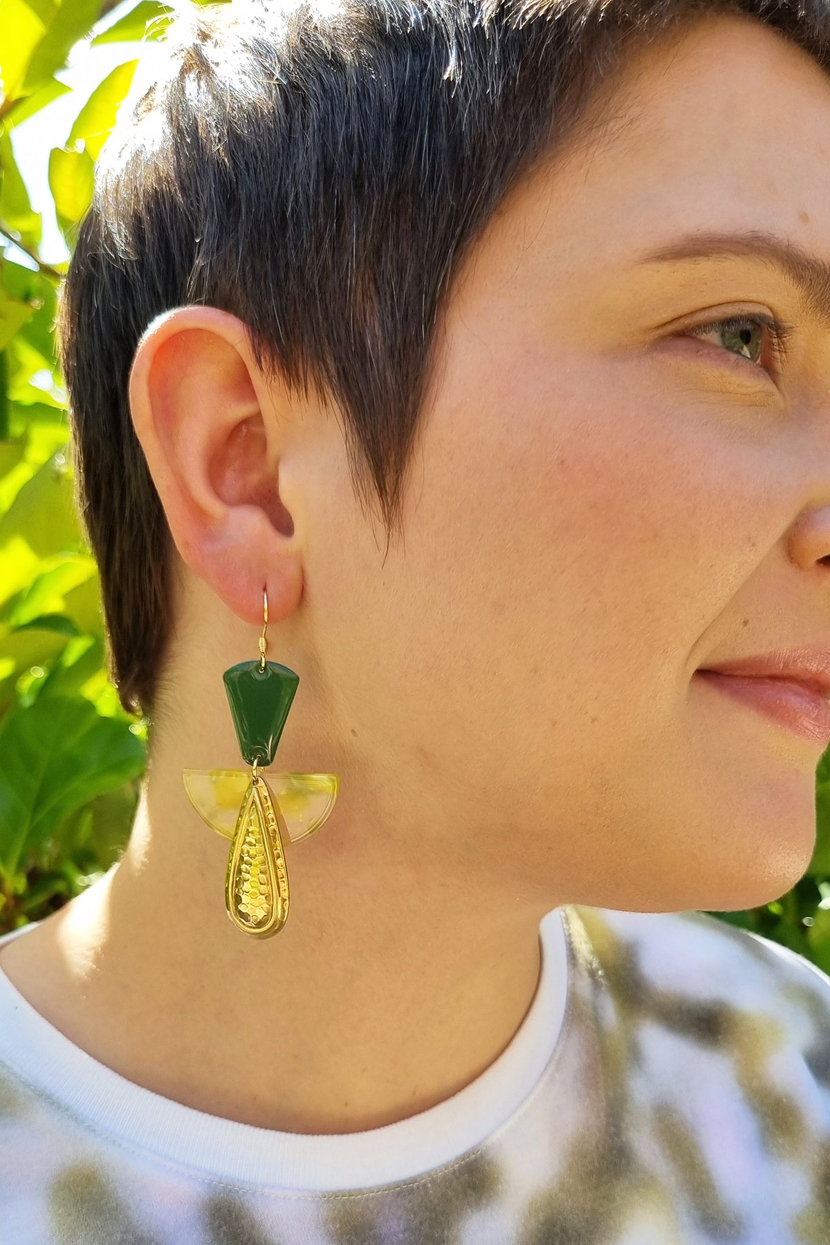 I started creating earrings while studying Industrial Design at RMIT, way back in 2001. I love designing jewellery as it bridges product and fashion design and enables me to playfully express my passion for colour and bygone eras.