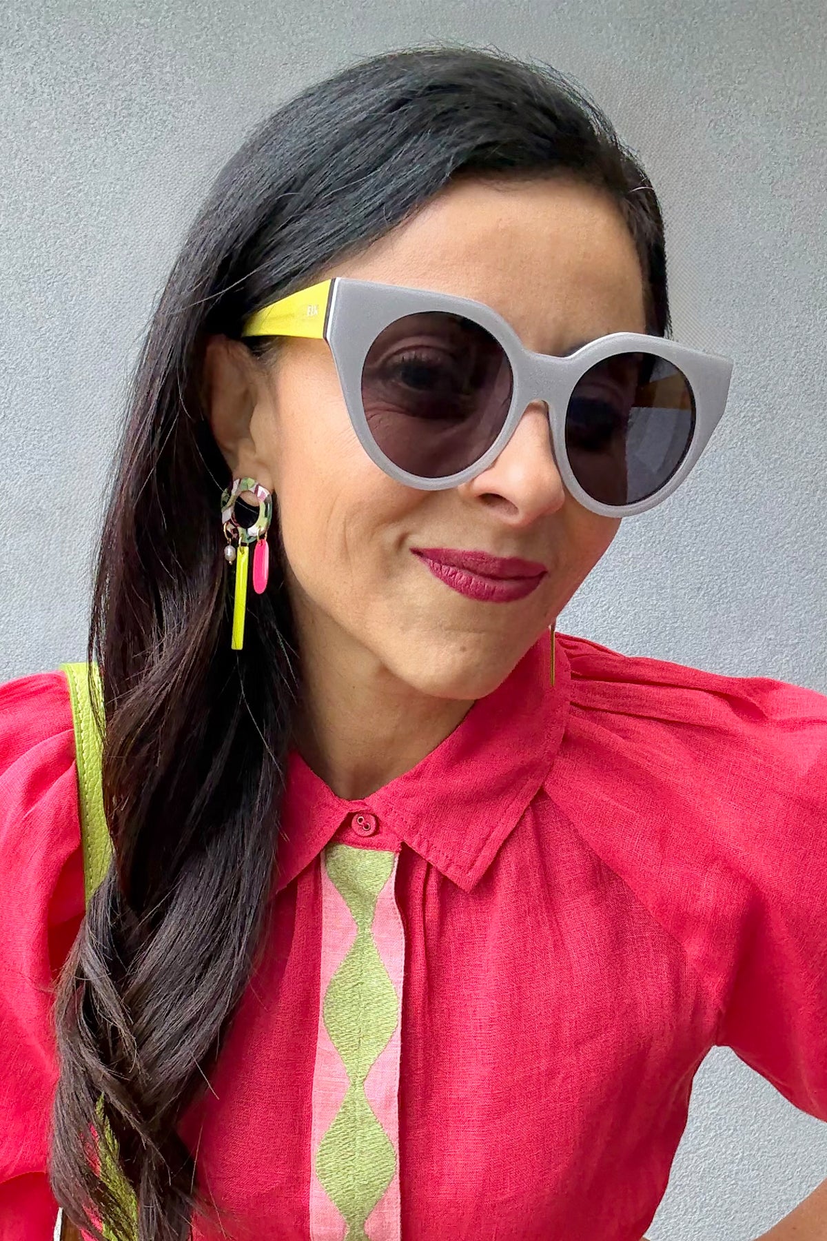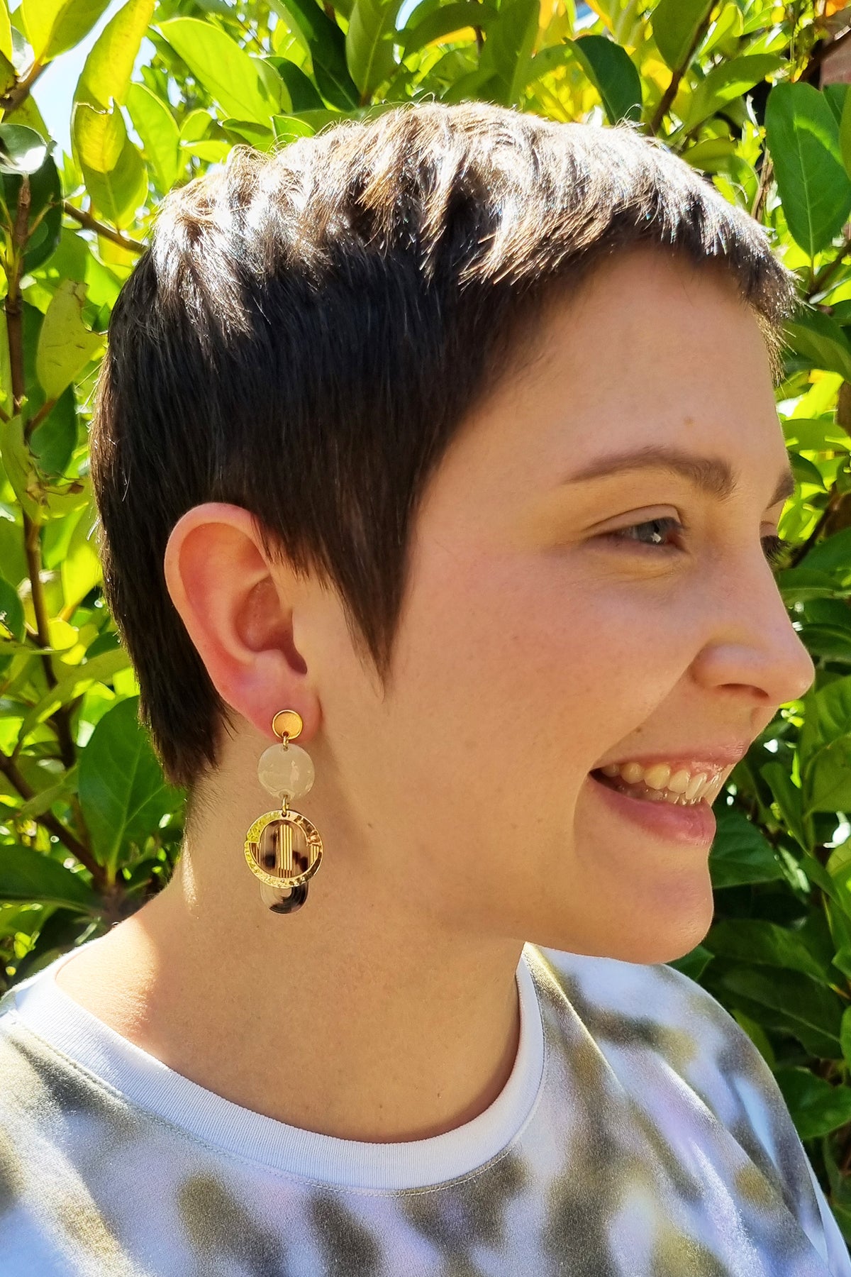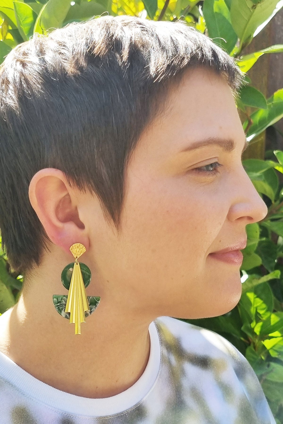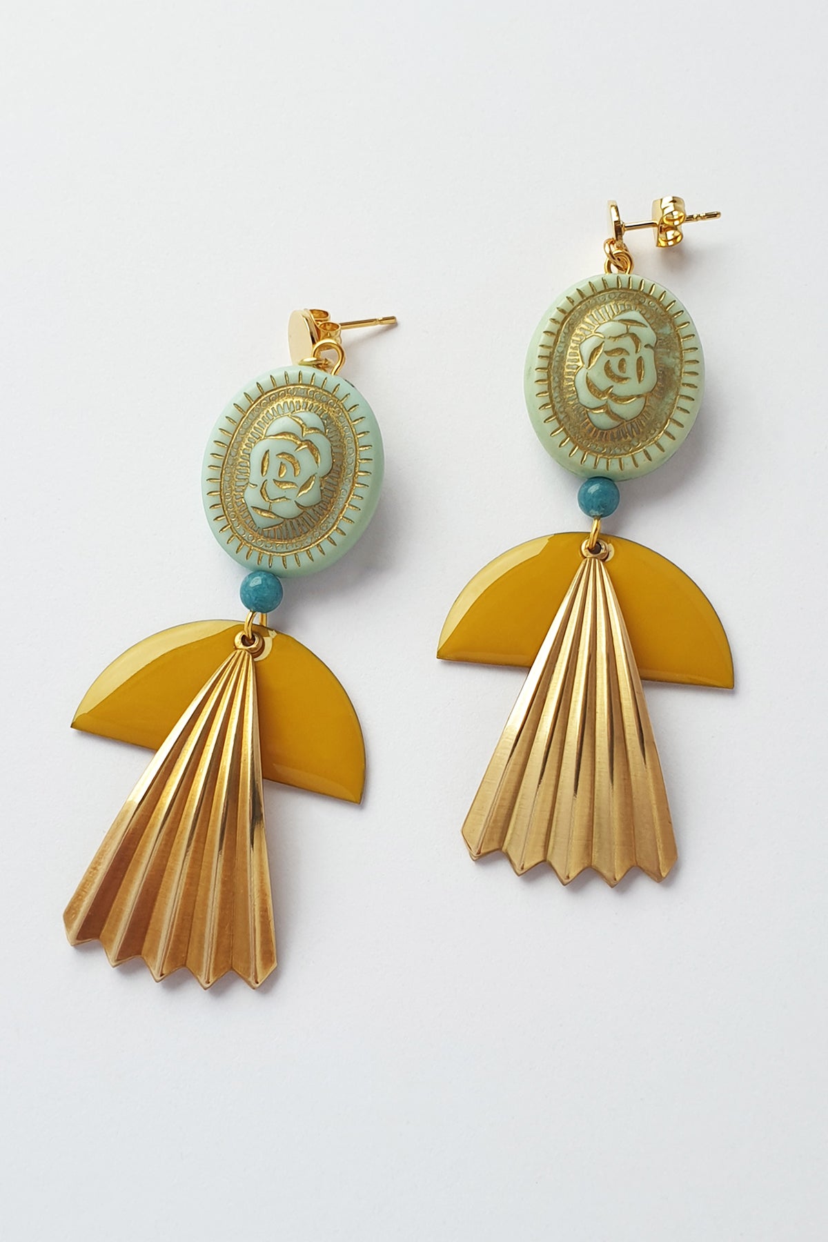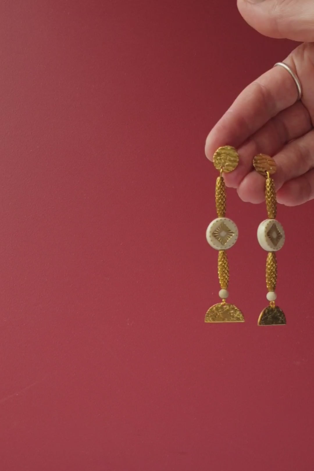 I started creating earrings while studying Industrial Design at RMIT, way back in 2001. I love designing jewellery as it bridges product and fashion design and enables me to playfully express my passion for colour and bygone eras.