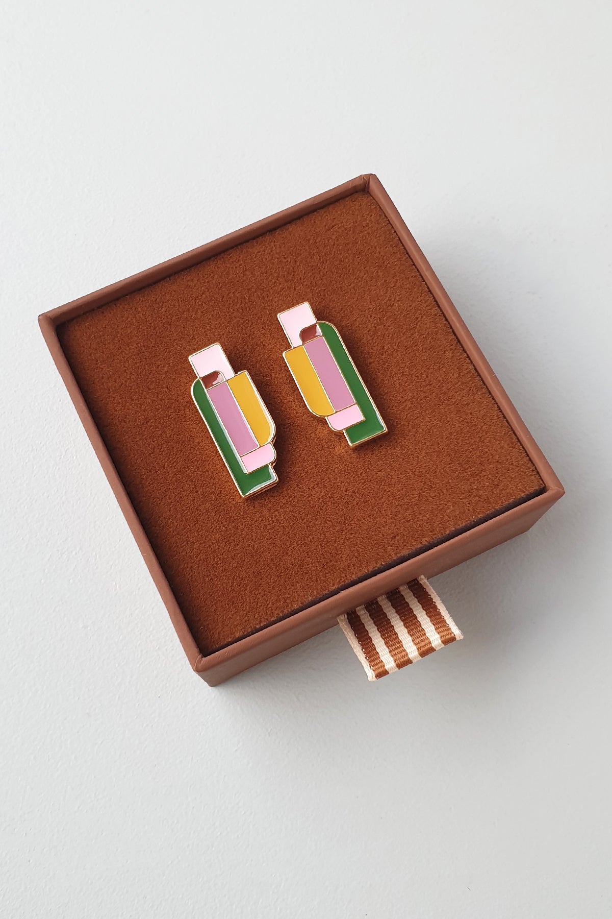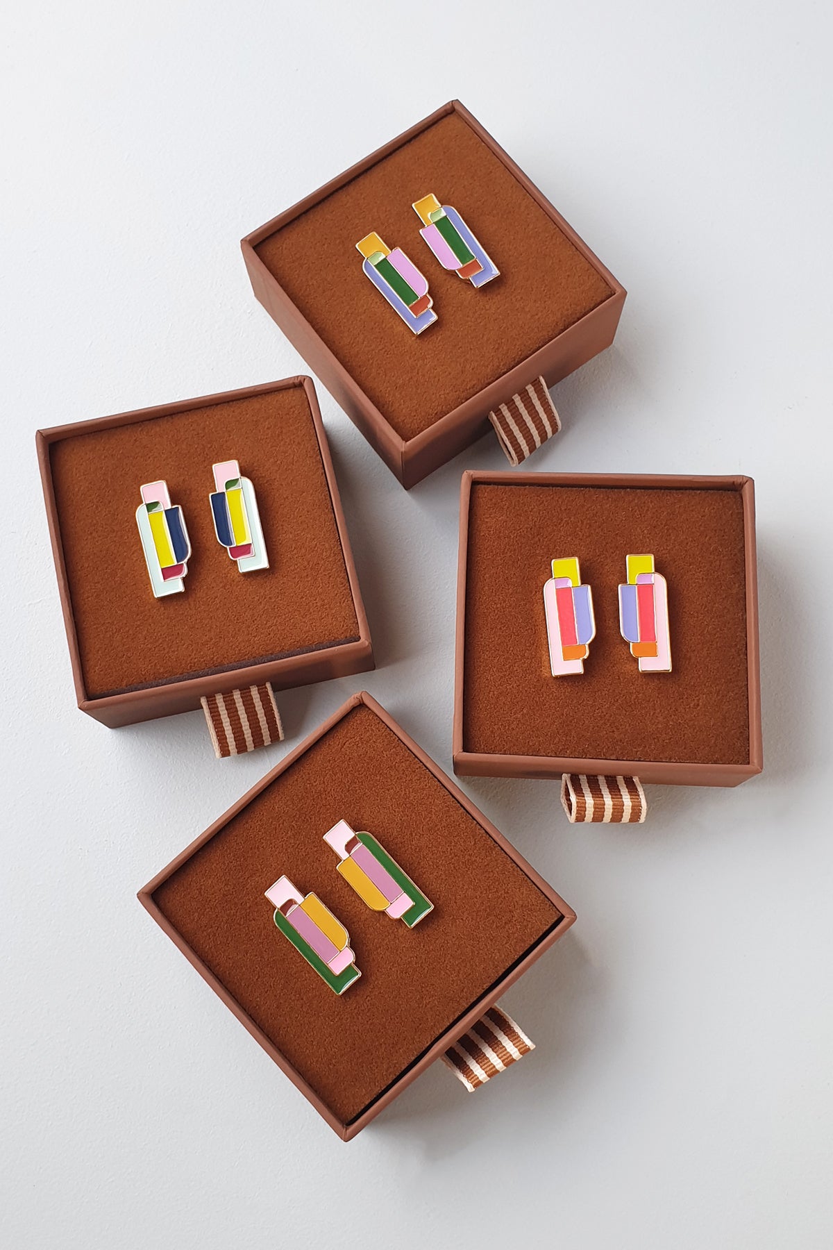 I started creating earrings while studying Industrial Design at RMIT, way back in 2001. I love designing jewellery as it bridges product and fashion design and enables me to playfully express my passion for colour and bygone eras.