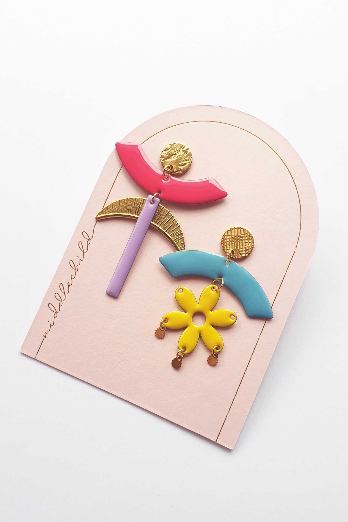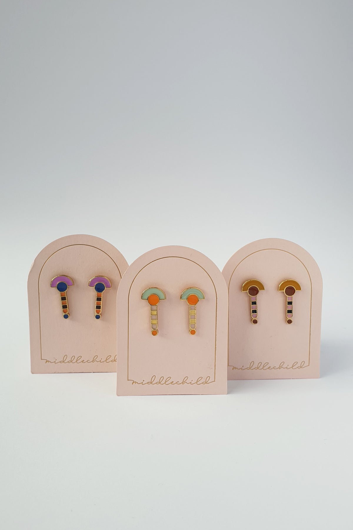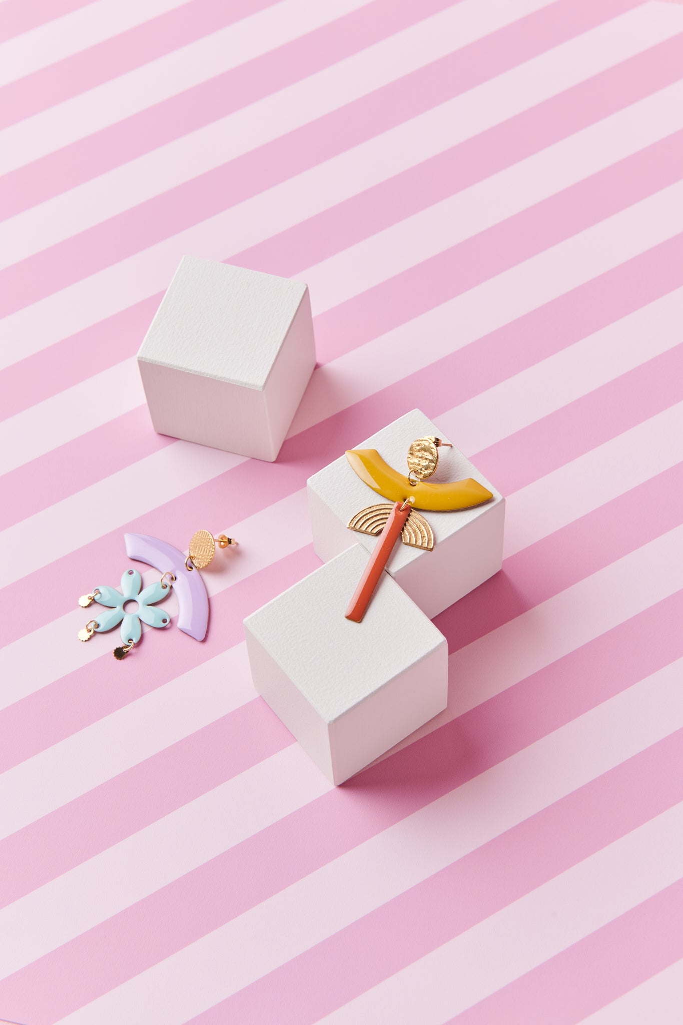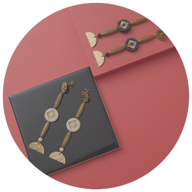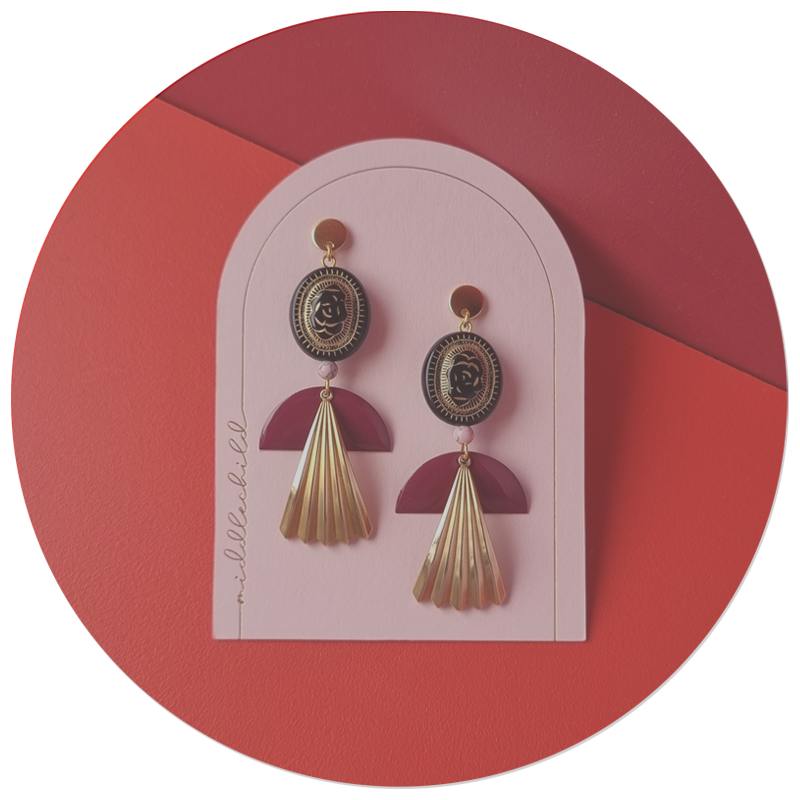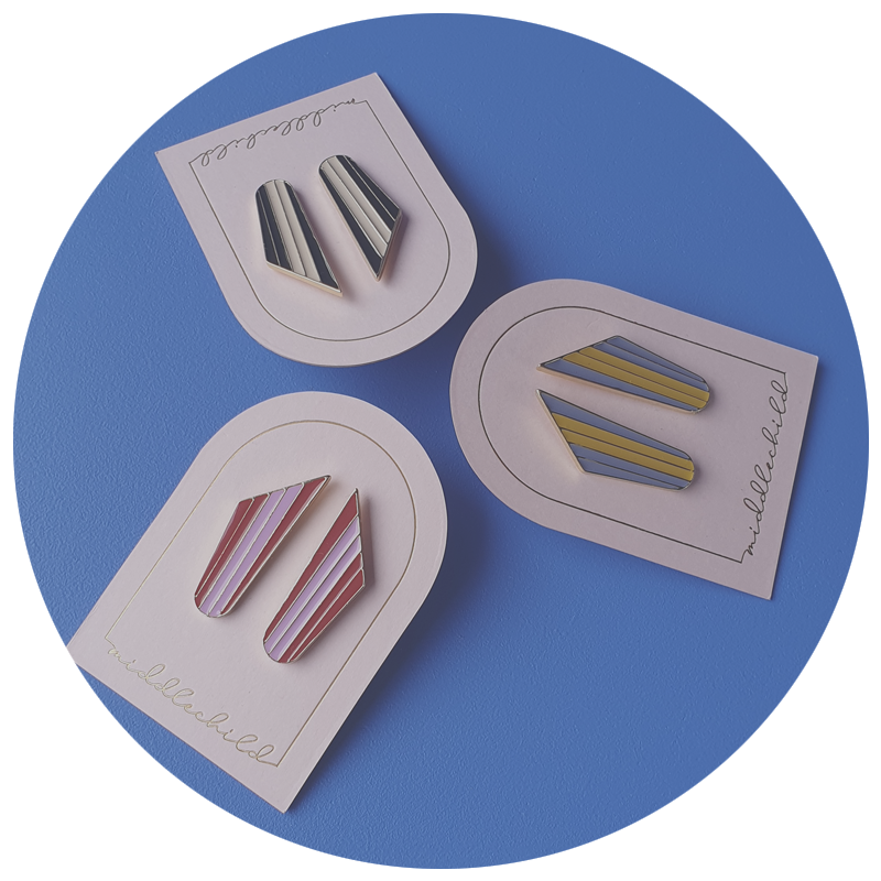 I started creating earrings while studying Industrial Design at RMIT, way back in 2001. I love designing jewellery as it bridges product and fashion design and enables me to playfully express my passion for colour and bygone eras.