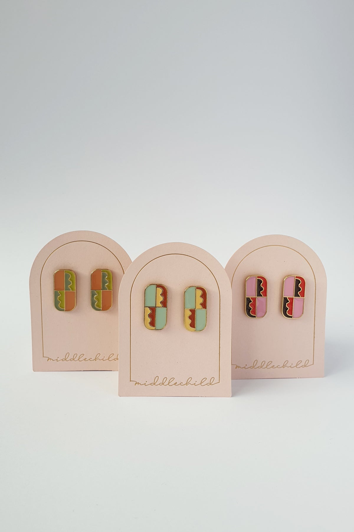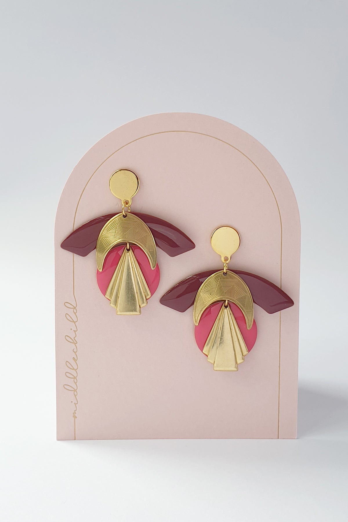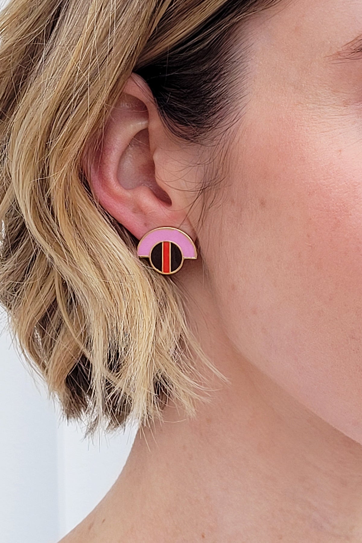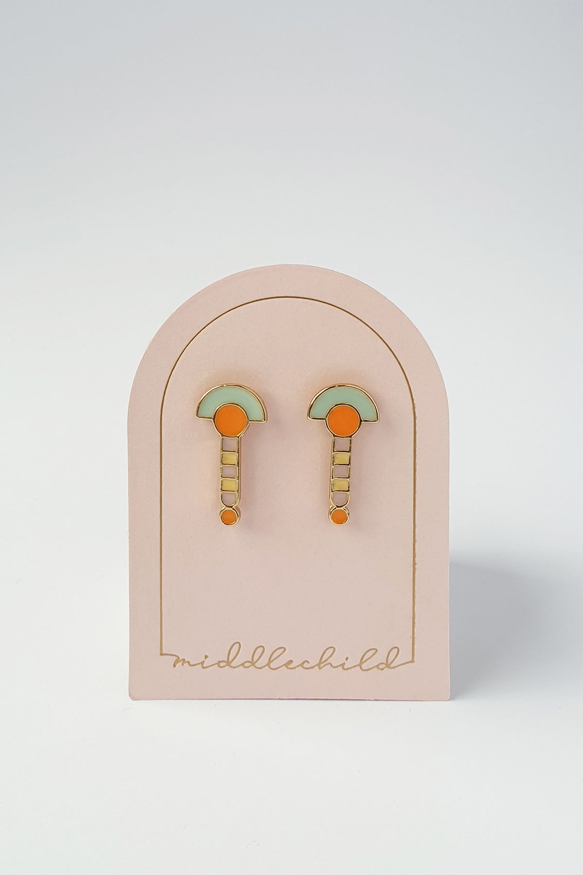 I started creating earrings while studying Industrial Design at RMIT, way back in 2001. I love designing jewellery as it bridges product and fashion design and enables me to playfully express my passion for colour and bygone eras.
