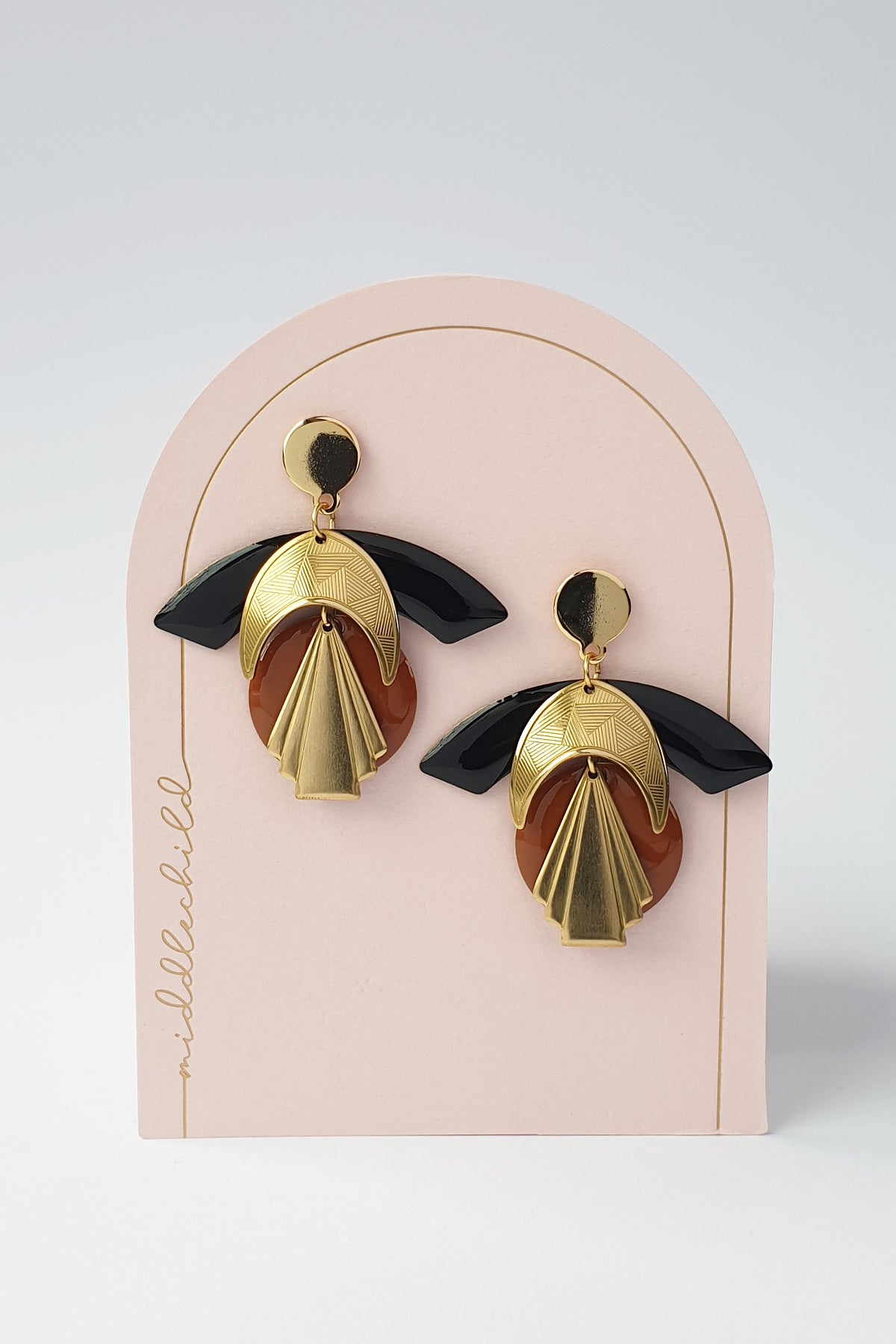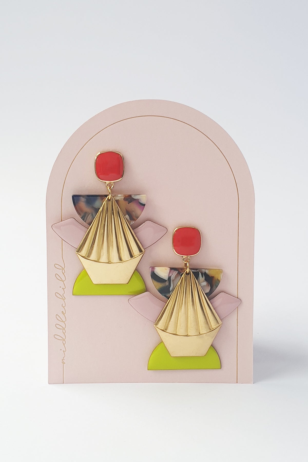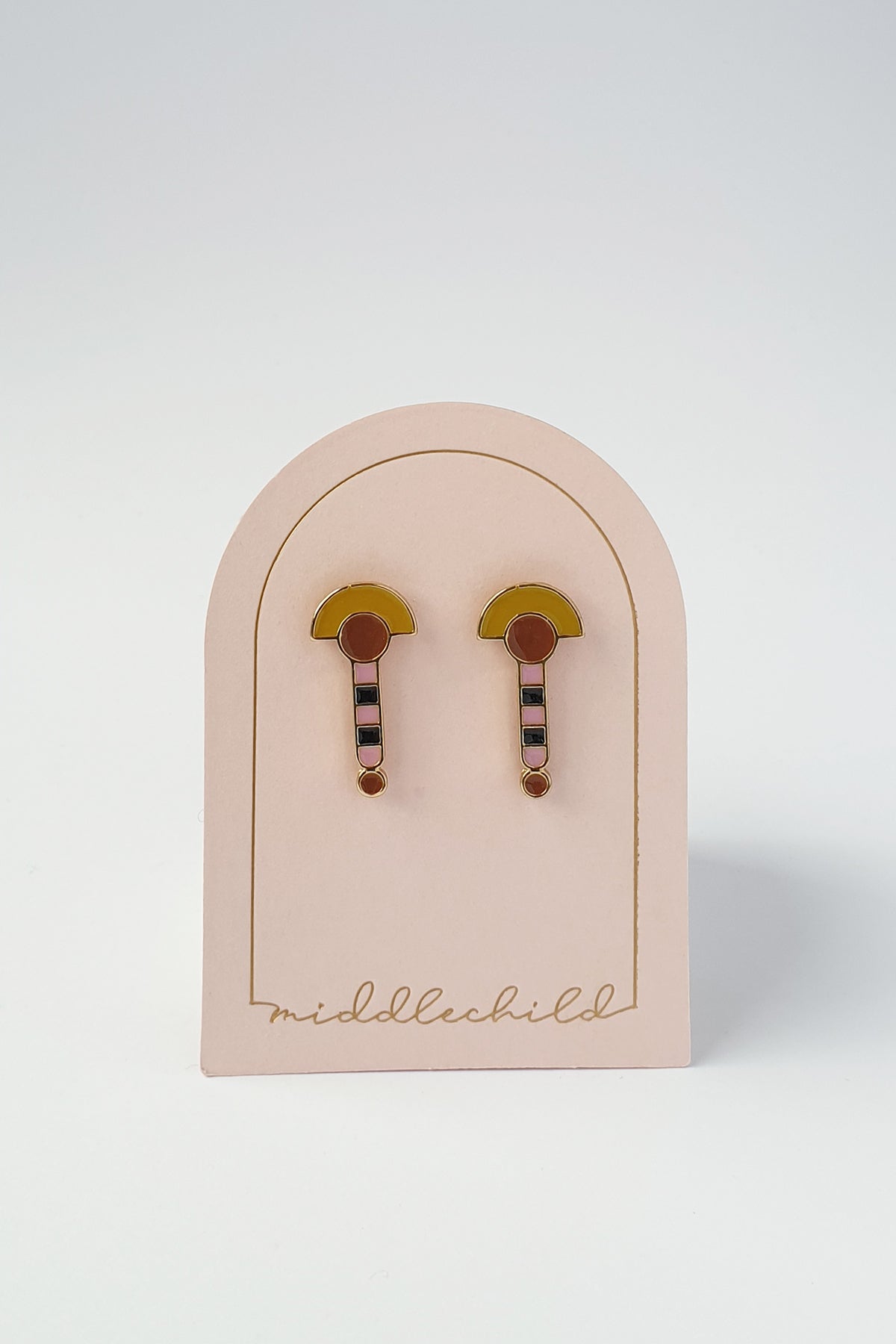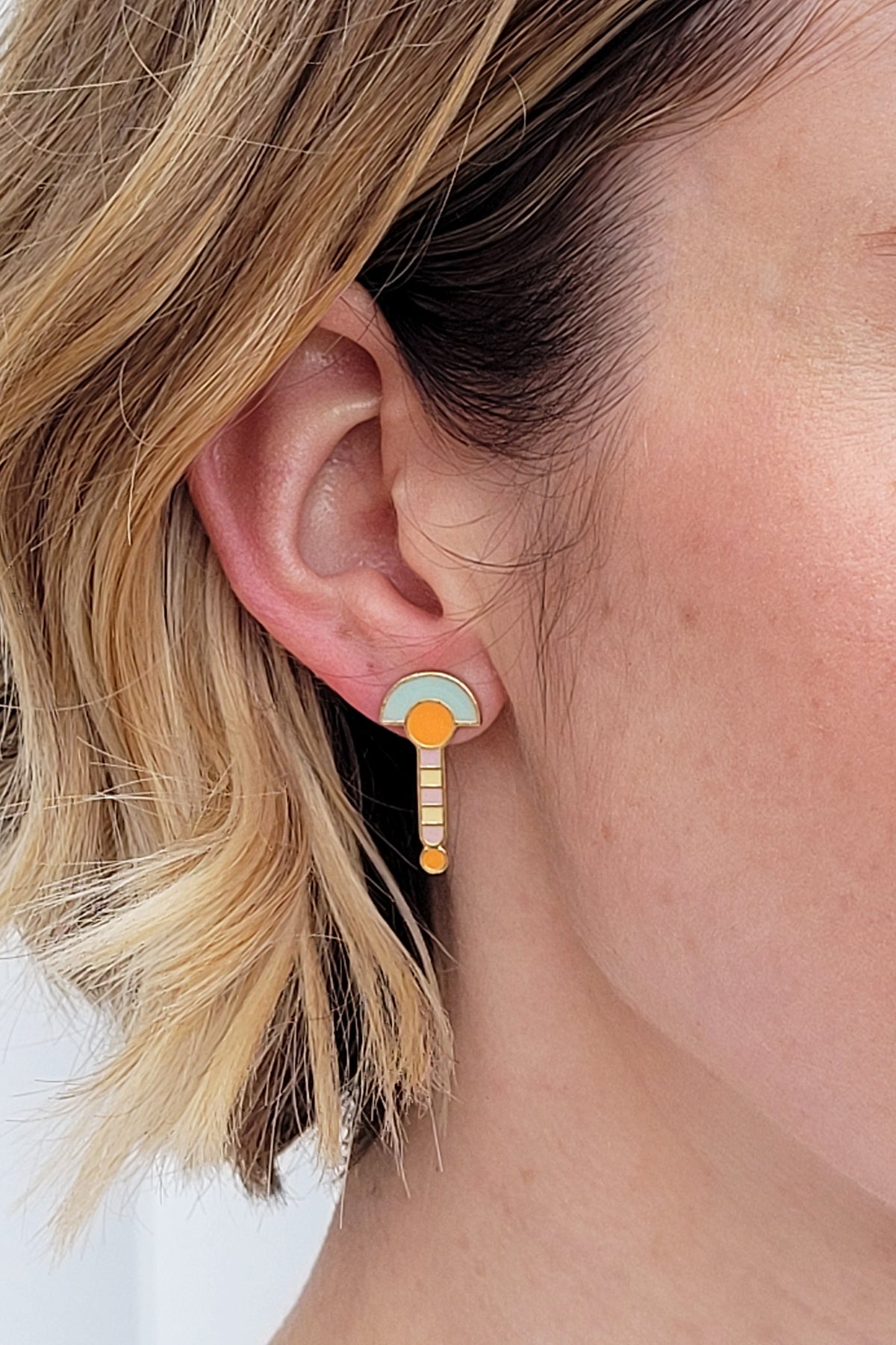I started creating earrings while studying Industrial Design at RMIT, way back in 2001. I love designing jewellery as it bridges product and fashion design and enables me to playfully express my passion for colour and bygone eras.