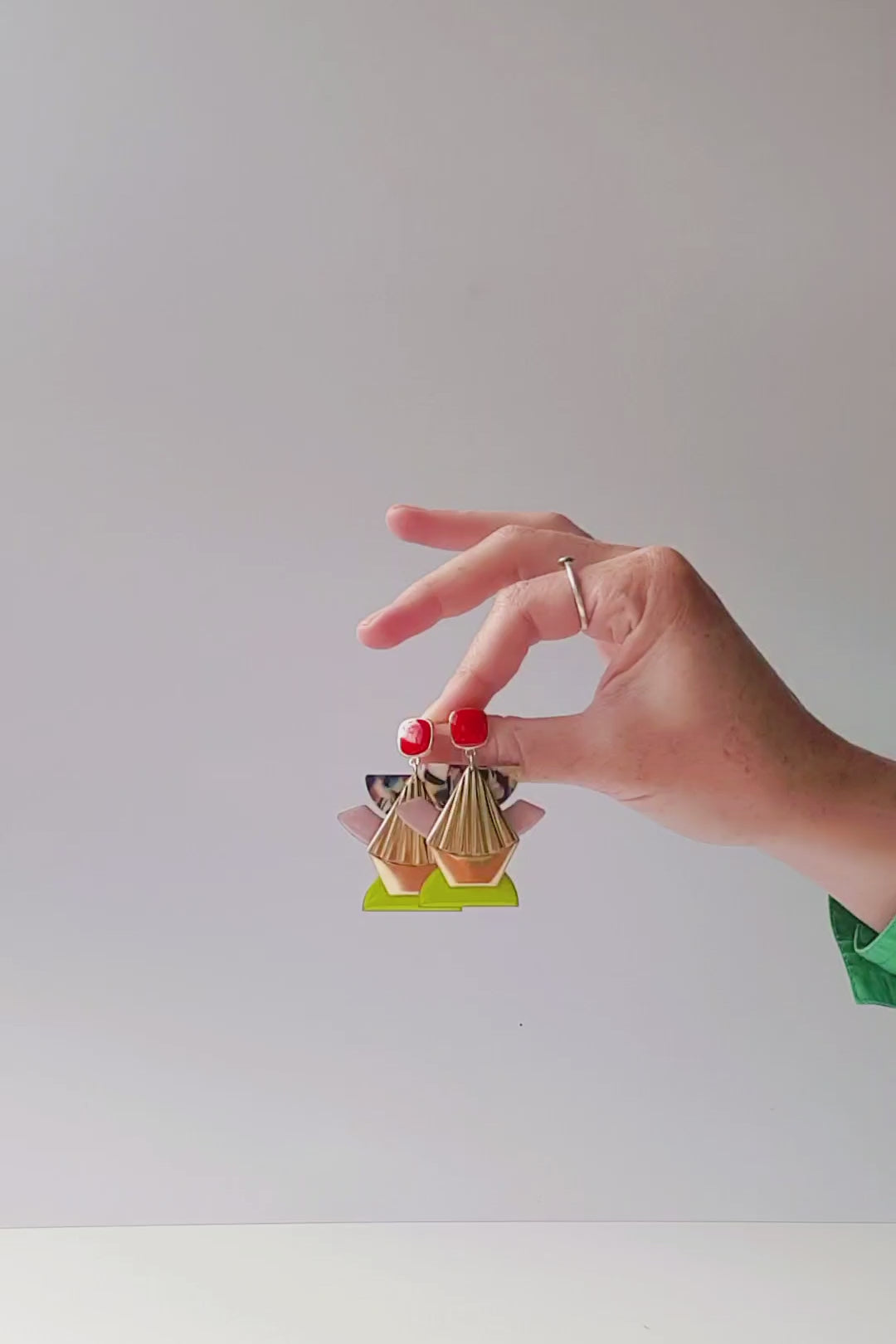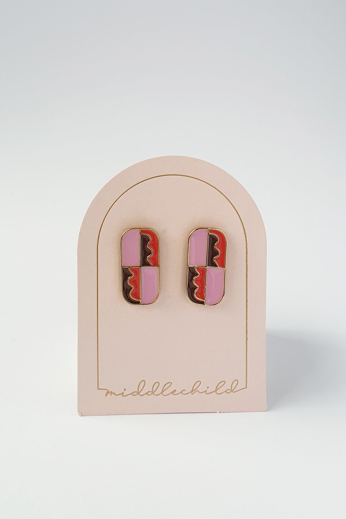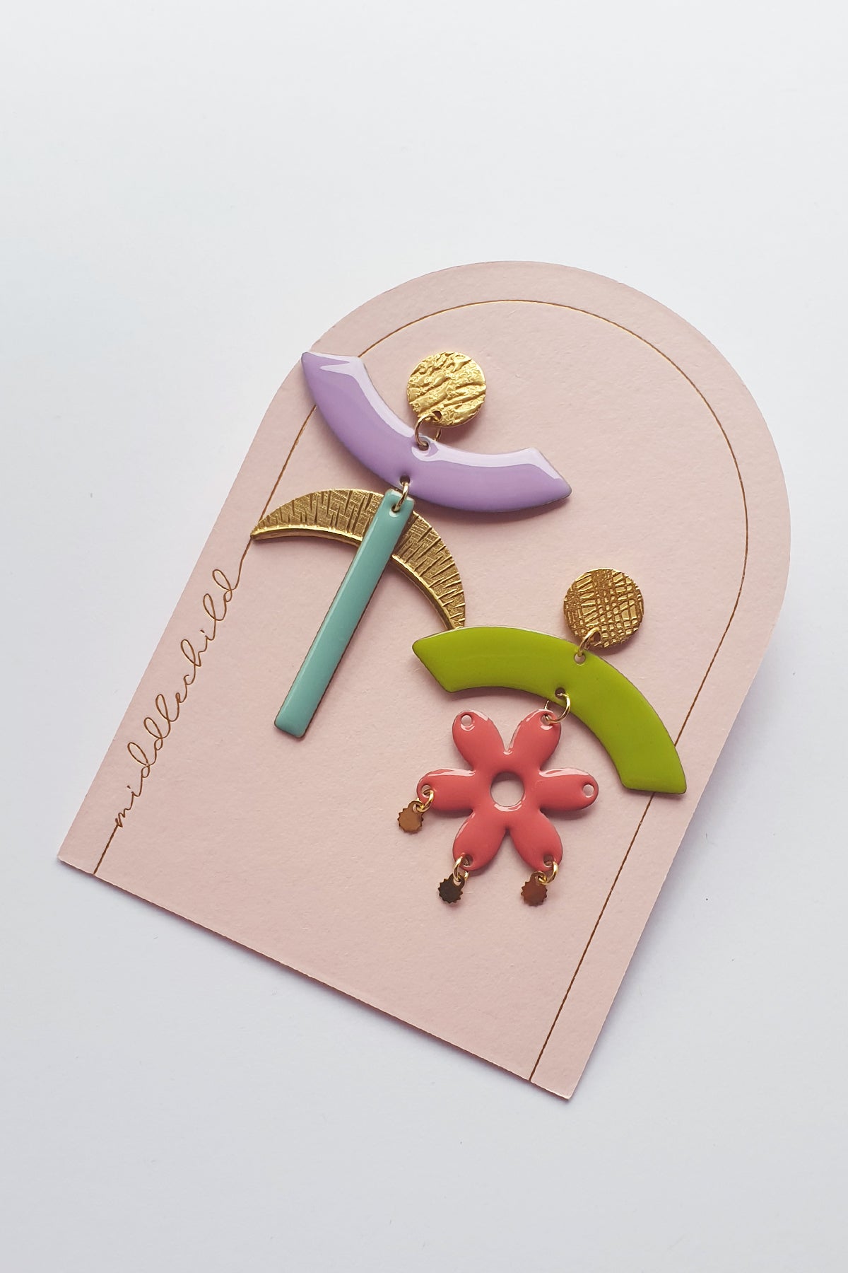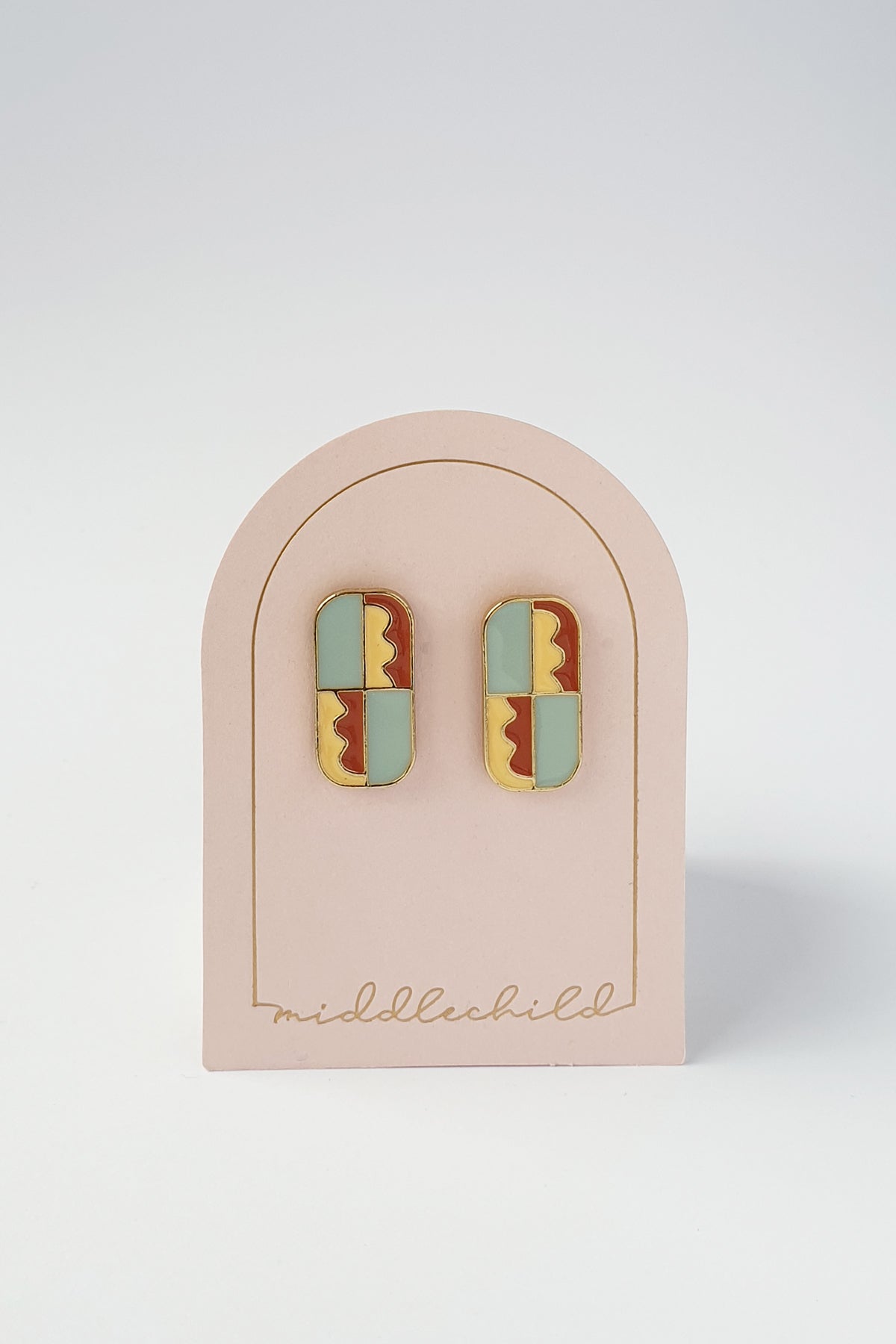 I started creating earrings while studying Industrial Design at RMIT, way back in 2001. I love designing jewellery as it bridges product and fashion design and enables me to playfully express my passion for colour and bygone eras.
